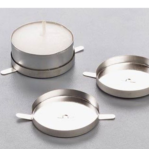 Teelichthalter 4 cm aus silberfarbenem Metall zum Einsetzen in eine Laterne.