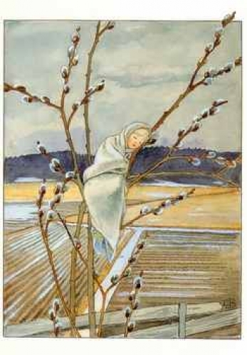 Kunstpostkarte Schlafendes Kind von Elsa Beskow.