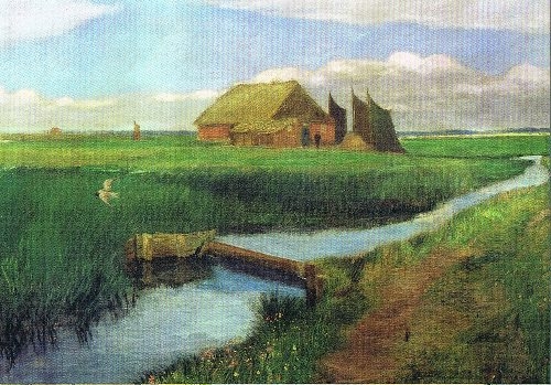 Kunstpostkarte Hamme-Hütte (1897) von Fritz Mackensen (1866-1953).