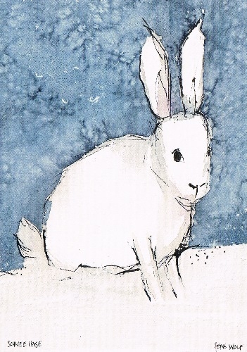 Kunstpostkarte Schneehase von Jens Wolf.