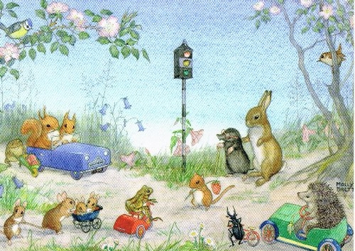Kunstpostkarte An der Verkehrsampel von Molly Brett.