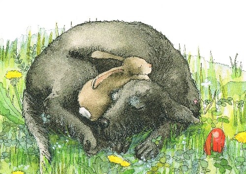 Kunstpostkarte Hase und Hund von Sanne Dufft.