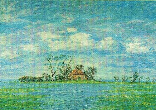 Kunstpostkarte Überschwemmte Hammewiesen (1928) von Walter Bertelsmann (1877-1963).