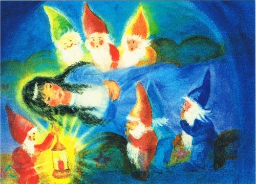 Kunstpostkarte Die sieben Zwerge von Dorothea Schmidt.