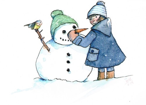 Kunstpostkarte Schneemann von Stefanie Messing.
